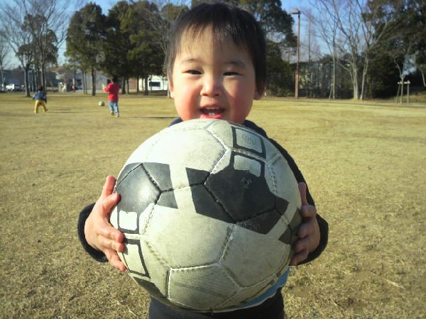 2歳になる息子です。休みの日は毎朝一緒にボールを追いかけていて、それが土日の一番の楽しみです。