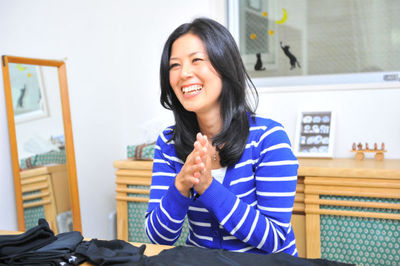 リカバリーウェア『VENEX』のモニター体験を始めて約1ヵ月、2児の母でもある梅村智子さんは毎晩眠るときのパジャマ代わりに着ているとのこと。「体験用に届いたトップスとボトムス、タイツを着て眠るのですが、以前のように寒くて夜中に震えることはなくなりました。眠っている間も血行がよくなっているみたいで朝の目覚めがスッキリして、ベッドの中でぐずぐずせずにサッと起きられるんですよ」