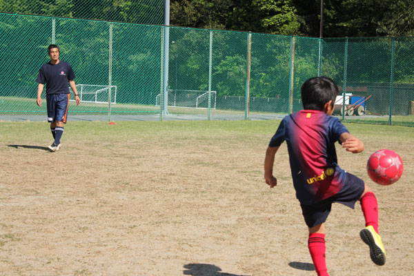 「"教える"という意識ではなく、子どもたちから答えを"引き出す"ことを心がけています。ですので、基礎練習よりもゲームのほうが比率としては高くなります。基礎練習は考えなくてもできてしまいますが、ゲームは考えなければできません。ゲームで良いプレーをしたところを褒めてあげると、その子の記憶の中にしっかりと残って、また同じような状況になったときに良いプレーを選択できるようになります。そのように子どもたちがゲームの中で出した答えを肯定してあげることで正しい方向に導く、子どもたちの引き出しを増やしてあげることが大切です」