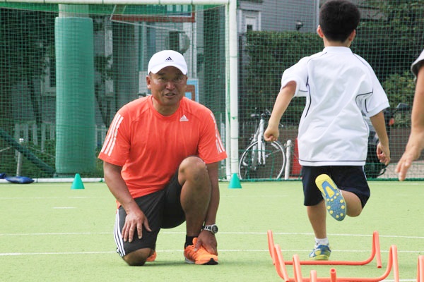 「大切なのは『行進の動き』だよ。行進の歩き方をだんだん速くして走りにつなげよう」「足下はフライパンのように熱いというイメージで。地面に足をつけている時間を短くしよう」
