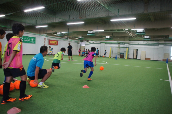 トレーニングではサッカーの試合で頻繁におこなわれる「前方へのダッシュ」の素早い動きを体験していきます。