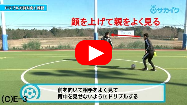 サッカーでは、パスやシュートをするために顔を上げて前を向いた状態でドリブルできなければなりません。