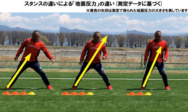 地面からもっともエネルギーを得ることのできる足幅があり、それ以上広がったり、狭くなったりすると、地面から得られる力が弱くなってしまうのです。