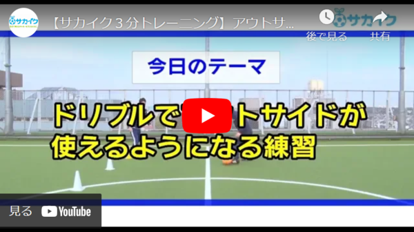 ドリブルで相手を交わすとき、フェイントを入れるときにアウトサイドも使うことでスムーズに抜くことができるので、しっかり身に着けたい基礎技術です。