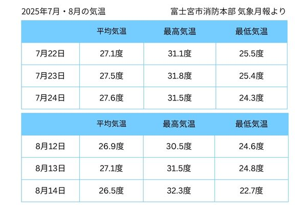 近年の夏の環境を踏まえ平地よりも気温が下がる富士という環境で実施。