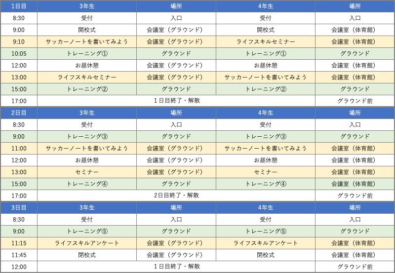 ・キャンプ期間中は、保護者から離れ非日常体験を経験するため練習見学は原則禁止とさせていただきます。