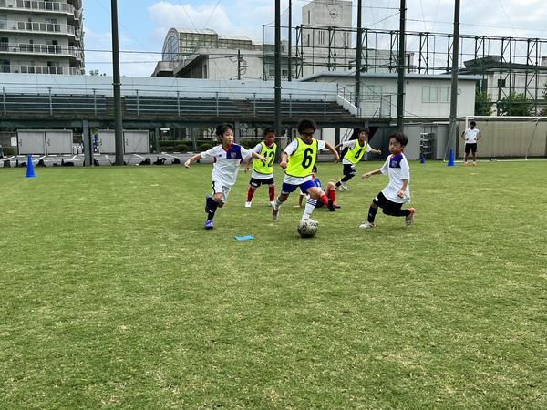 「今、ドリブルした方がいいのか、パスをした方がいいのか?」認知・判断をすることの個人技術の習得と「1対1〜3対3」のスモールゲーム、最終日の7対7のゲームを通しての仲間との関わり方や判断技術の習得と習慣化をキャンプでは目指します。