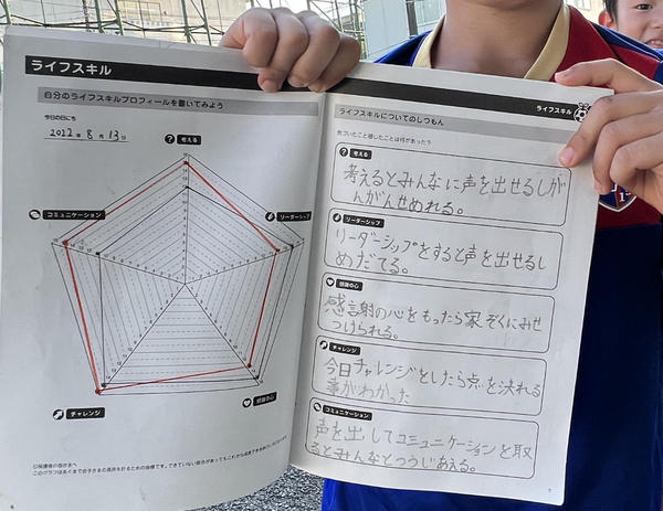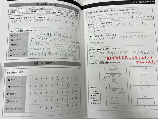併せてキャンプでは、「キャンプ用サカイクサッカーノート」を使用し言語化することで「考える力」も養います。