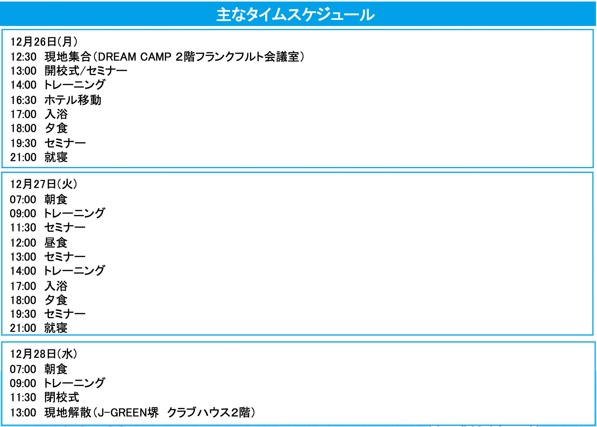 技術面は当然ですがメンタル面で弱点がある選手や試合中に声が出せない選手には特にお勧めしたいキャンプです。