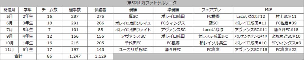 ●第5回山万フットサルキッズリーグ結果 (※クリックすると拡大図が表示されます。)