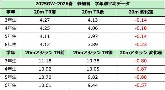 【キャンプ参加者(小4)の実績】