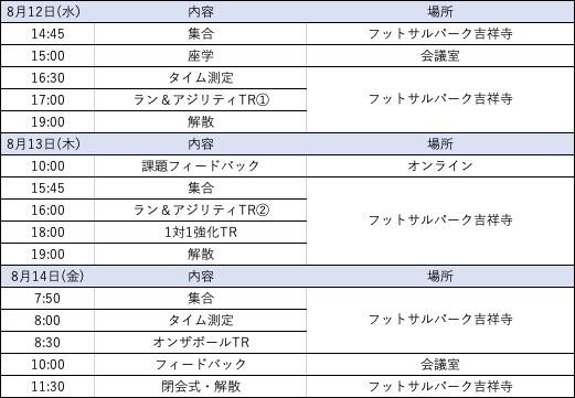 サッカーに必要なスピードを強化するタニラダーキャンプを夏休みも開催いたします。今年の夏も暑熱対策のため夕方と朝のトレーニングで3日間の通い形式となります。