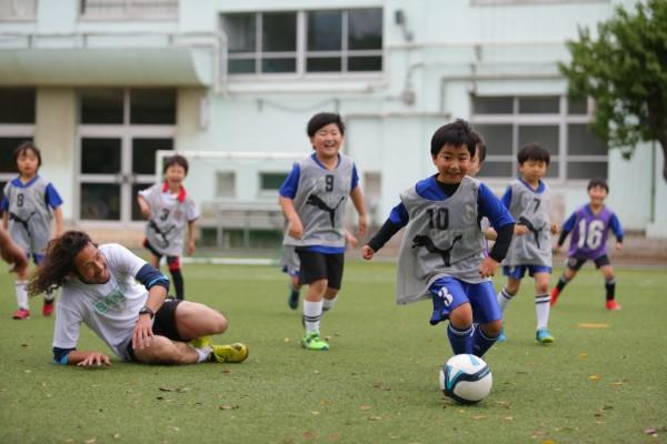 でも、クリニック中は常に笑顔。時に冗談も交えながら、子どもたちと一緒にボールを蹴って楽しむことに中澤さんも夢中になっていました。