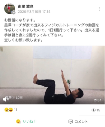 具体的には、投票機能で皆が参加できるライブ配信の日時を決めて、BANDのカレンダー機能を使って選手たちにアナウンス。事前にプレーモデルに関する資料をPDFで送って予習をしてもらい、時間になると南里監督の講義がスタート。選手は各家庭で同じ時間に、スマートフォンやパソコンなどで視聴します。