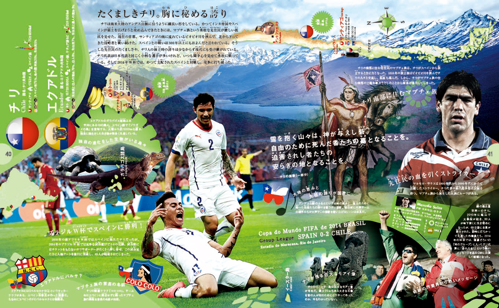 連載第3回目は、前回お伝えしたように『親子で学ぶ サッカー世界図鑑』から、南米の代表としてチリのページを取り上げ、サッカーをキッカケに見えてくる、その社会的、文化的背景を紹介したいと思います。