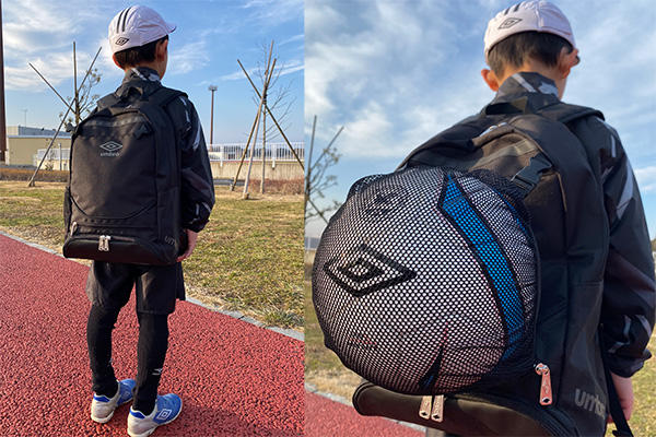 「はじめて3点セット」のバッグパックは16Lの大容量。ボール入れや水筒用ポケットなど、サッカーに必要な道具を入れるための専用ポケットとしてつくられているので、とても整理しやすくなっています。これで道具の入れ忘れや、汚れものの出し忘れも防げそうです。