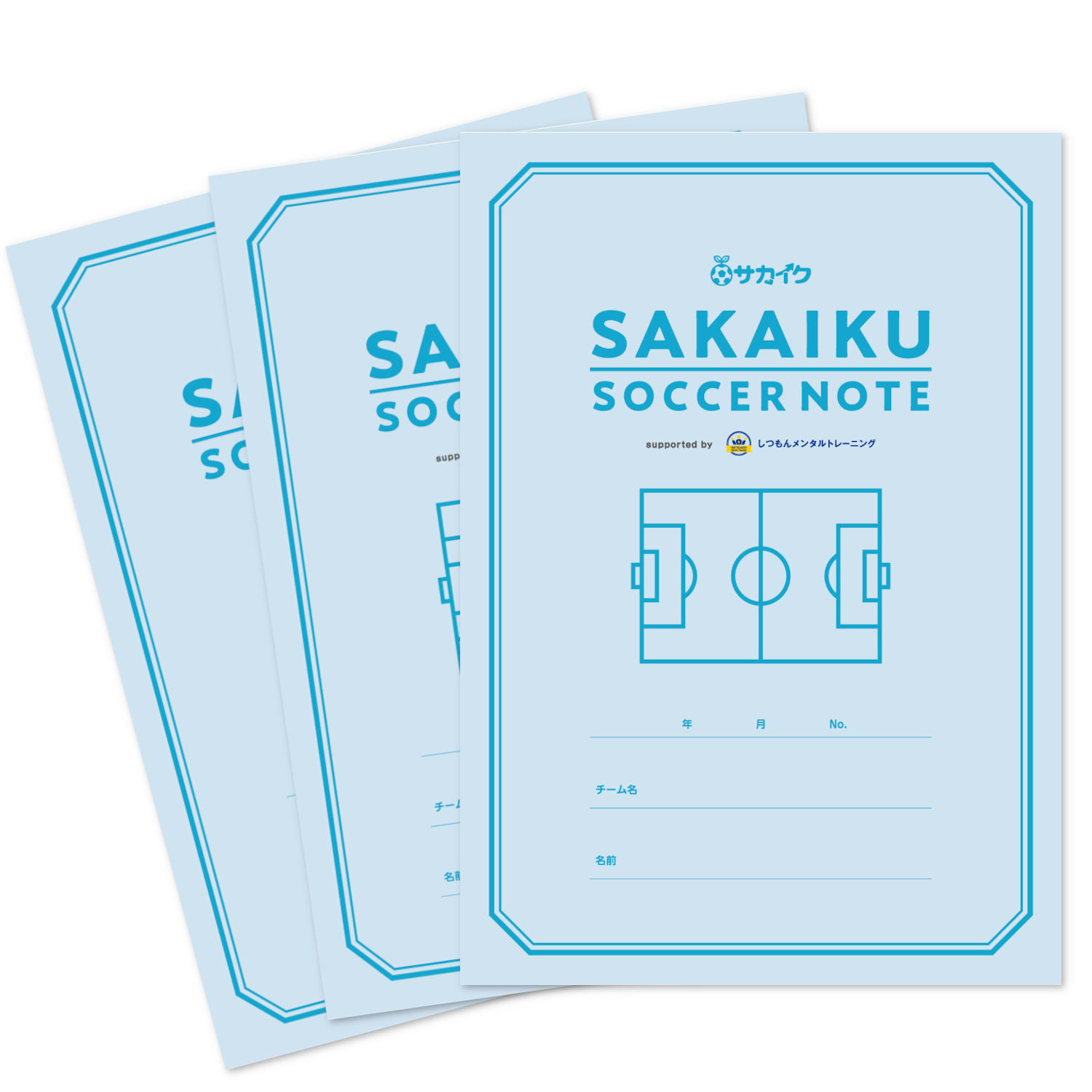 さらにサッカーを楽しんでいただくために、サッカー3点セットに加え、予約特典として「サカイクサッカーノート」を3冊つけることにいたしました。