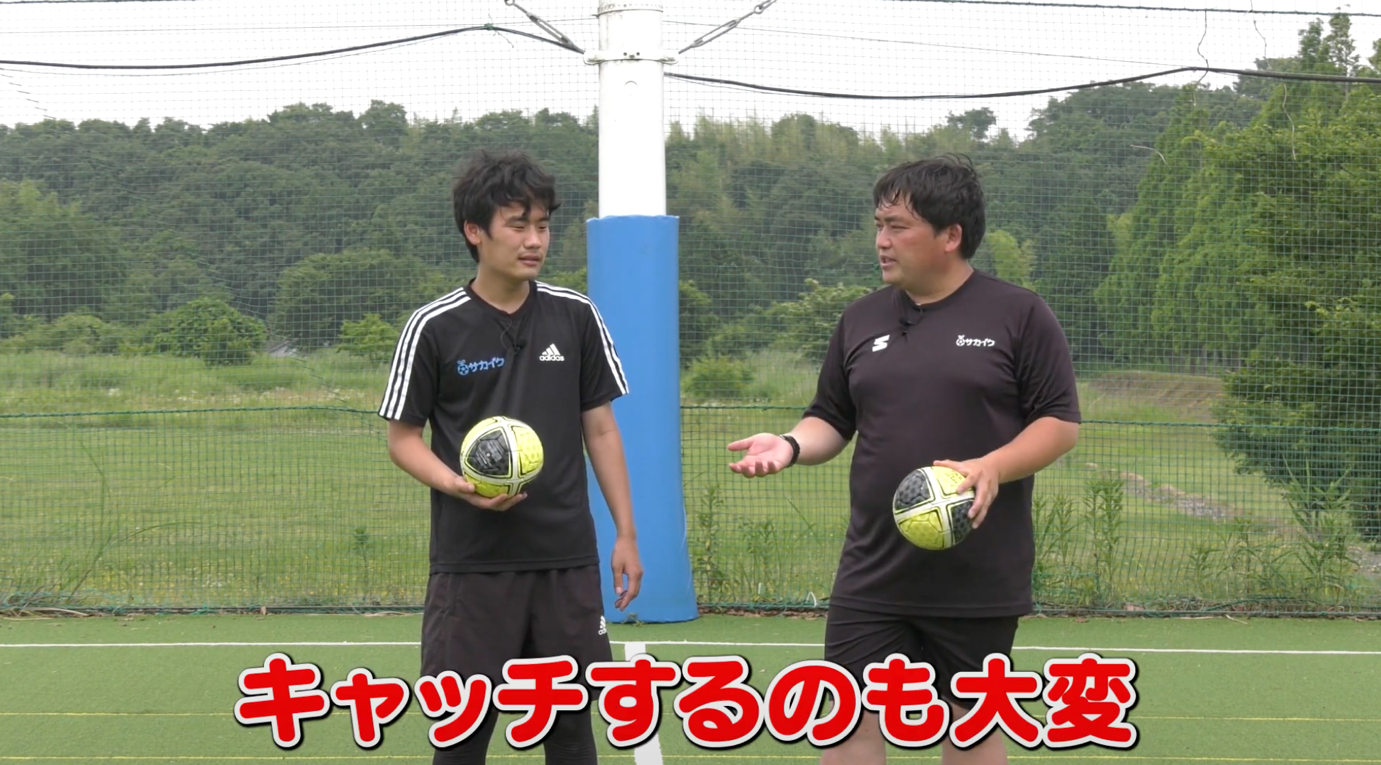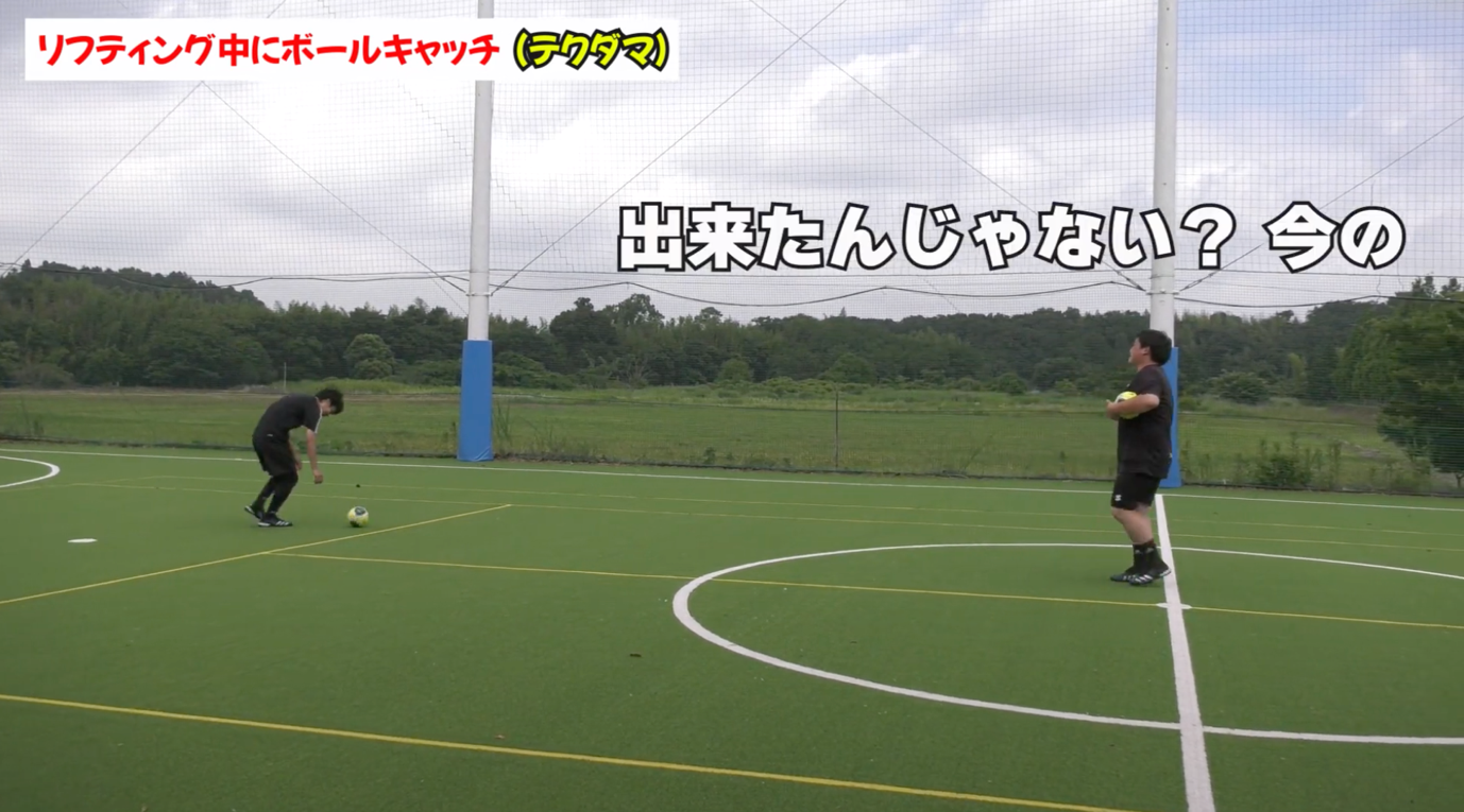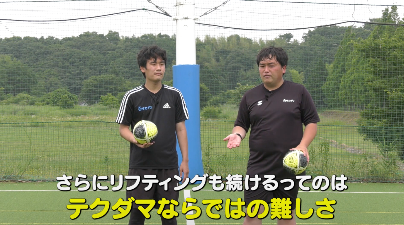 サッカー上達のために作られた「テクダマ」を使ったトレーニング第3回目の今回は、リフティングをやりながらのボールキャッチ。今回もサカイクキャンプで指導を務める柏瀬コーチと猪熊コーチに実演してもらいました。
