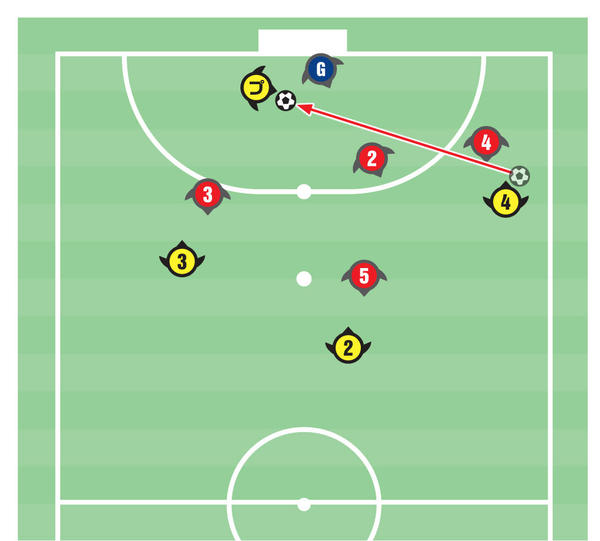 ここに味方からパスが入れば、ガラ空きのゴールに蹴り込むだけというカラクリです。