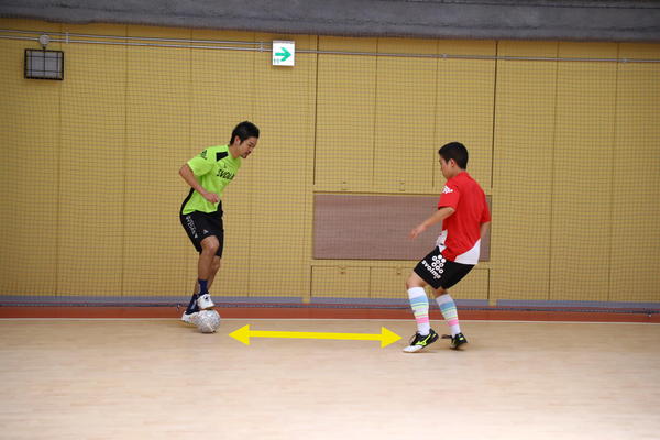 狭いピッチで相手が近い中、フェイクをかけて相手との距離を取り、ボールを受けたときに余裕を持つのが大切です。そして相手の状況によってボールをその場に止めるのか、中へトラップするのかを使い分けられるようになるといいでしょう。