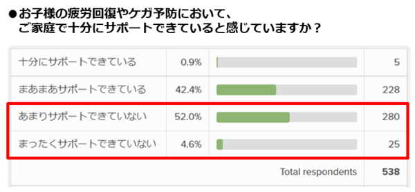 前回のレポートでもお伝えしたように、98.4%の保護者が子どもの怪我予防や疲労回復に関心があると回答しています。