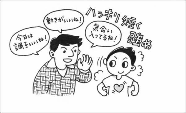 声かけの口調もハッキリと短く強めに「今日は調子いいね」「動きがいいね」「気合入ってるね」「よし、行ってこい!」と気持ちが昂るようなものにします。