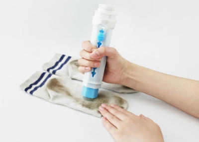 いつも靴下の汚れを取るために使用している固形石けんは、直持ちで手がかぶれやすかったのですが、これはその心配がいりません。スティック状で使いやすく、石けんの香りも強すぎないのも良かったです。(40代・E.Yさん)