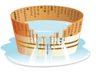 「縦長の板を組み合わせた"桶"を思い浮かべてみてください。この桶の板が一枚でも短かったらどうなるでしょう? 水を張ろうとしても、短い板の部分から水がこぼれてきますよね。一枚一枚の板を栄養素と考えてみてください。栄養素もどれかひとつが足りていないと、そこまでしか栄養を摂ることができなくなるのです」