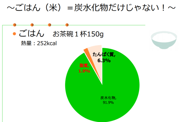 というように、それぞれ役割が違うことが分かりますね。人間が本能的に求めている食事バランスは、野菜2:肉1:ごはん4ということなんです。つまり、ごはん4:おかず3の割合になっている食事が理想です。