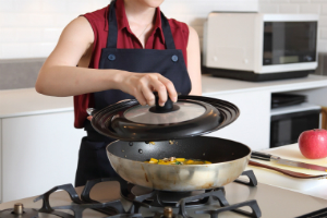 4.3に水を入れて蓋をし、カボチャが柔らかくなるまで煮る。