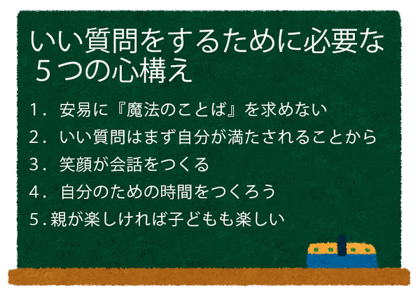 「子どもを大切に思うなら、自分も大切にする。自分のために髪を切るとか、本を読むとか、リラックスできれば何でもいいんです。すべてが子どものために! になってしまうと、子どもも常にプレッシャーを受けることになります。そんな状態で質問をしてしまうと質問ではなくて尋問になってしまうんです」
