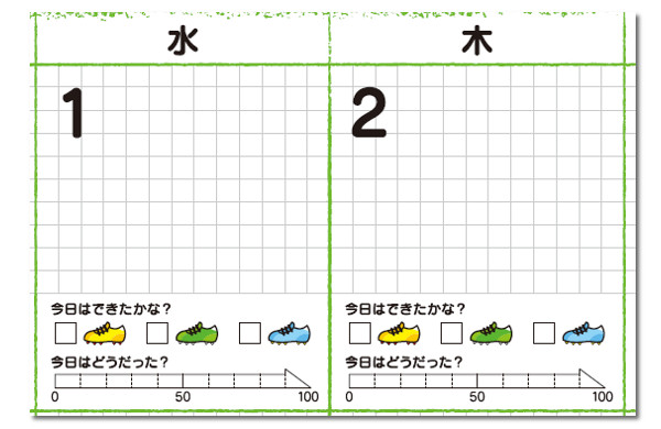 そんな藤代さんの思いを込めて監修した「しつもんサッカーカレンダー」には「今日はできたかな?」「今日はどうだった?」という、子どもたちが振り返りを習慣にできる2つのしつもんが用意されています。
