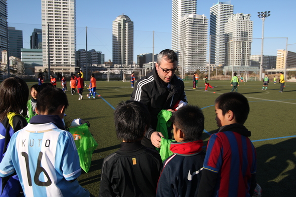 【質問内容】日本の町クラブでは、技術レベルの高い子と低い子が混在しています。グローバルメソッドで練習する場合、ある程度のトラップ(ボールコントロール)能力を持った子でないと、ミスが出て練習にならないと感じます。トラップ能力が低い子どもであっても、グローバルメソッドで練習をしながら、トラップ能力を高めたほうがいいのでしょうか。それとも先にアナリティックトレーニング(反復練習)をして、トラップ能力をある程度身につけてから、グローバルメソッドの練習をしたほうがいいのでしょうか。