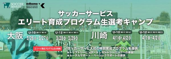 サッカーサービスエリート育成プログラム生選考キャンプ大阪・川崎 開催