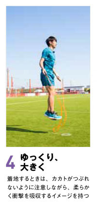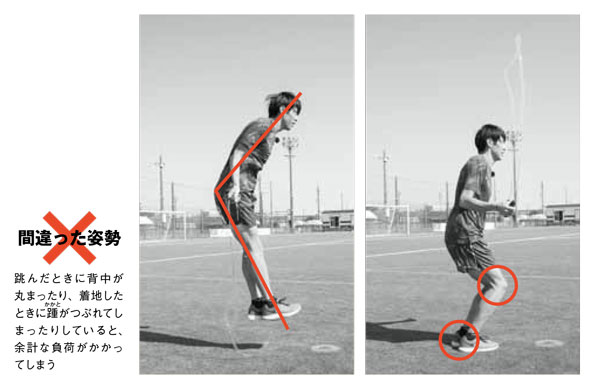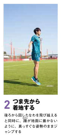 子どもの遊びというイメージがある「なわとび」ですが、じつは「真っすぐな姿勢」と「つま先からの接地」を意識させるためには最適なトレーニングです。 ポイントは「前回し」ではなく「後ろ回し」で行うこと。