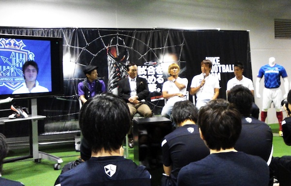 22日、NIKEの新スパイク「T90 Laser IV」の発売を記念して味の素スタジアムでトークイベントが開催された。出席したのは、元日本代表FW釜本邦茂氏、横浜FMの大黒将志、渡邉千真、小野裕二、広島の李忠成ら日本を代表するストライカー達。サッカー通でも知られる俳優・タレントの勝村政信氏も交え、日本の「ストライカー論」についてトークが展開された。