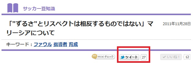 ●STEP2:サカイクのコラムで気に入った記事のツイートボタン(赤囲み)をクリック