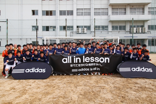 昨年8月から展開しているアディダス特別課外授業『all in lesson すべてをかける情熱を学べ。』世界で活躍しているアディダスファミリー(現役アスリートや指導者、アーティストなど)が、特別講師として学校に訪問し、生徒たちに向けて自分たちが情熱をかけたエピソードをもとに、持てる力のすべてを出し尽くして夢に向かって熱い情熱を持つことの大切さを伝えていく。
