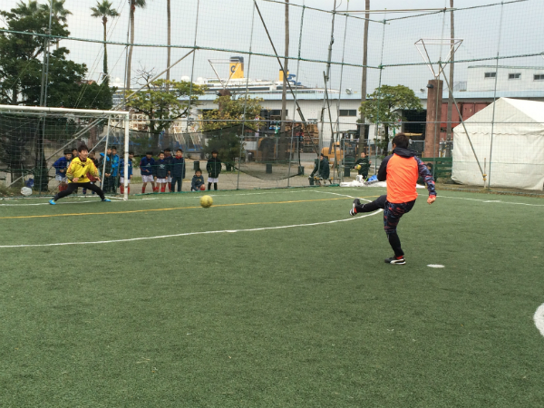 また午前・午後の部の間では、「MR12CUP FINAL」が開催されました。こちらは、毎月同会場にて開催されているフットサルの試合で勝利した毎月の優勝チームの中から最終的に勝ち抜いた年間優勝チームと準優勝チームがMR12所属選手とPK対決を行うという、ドリームPK対決。プロのゴールキーパー相手にゴールを決めることができるか、またプロの選手からゴールを守れるかという白熱した戦いは大いに盛り上がりました。