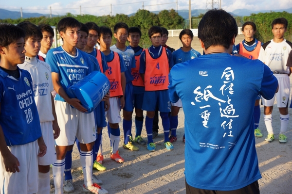 2000年シドニー五輪のメンバーとして活躍した三浦淳寛さんがサッカー部部員30名に対して直接指導を行いました。今年4月に発生した熊本地震により、通常の練習が困難になった部員に対し、「サッカーをやっている間は、震災を忘れ、一生懸命頑張って欲しい」と部員たちを励まし、組織的な守備から攻撃に至るまで積極的に指導されていました。