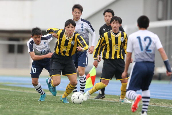 前半21分、右CKから相手のクリアボールを③角田が左足のゴール。その6分後には⑮渡邊泰基が左サイドをドリブルでえぐると、ニアのクロスに㉒榎本樹が詰めて追加点。畳み掛ける2ゴールで前橋育英が米子北を突き放した。