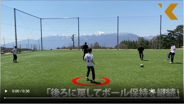 ② 育成年代の試合で自主練メニューが実際に使われているシーンを紹介し、解説。