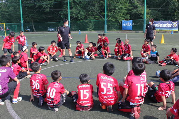 また、キャンプで導入している、上手に振り返りができるサッカーノートも使用。自分自身を振り返る習慣がつく工夫が施されているので、トレーニング前とトレーニング後でどんな部分が成長したか子どもたち自身が気づけるきっかけになります。