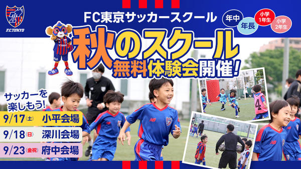 「FC東京サッカー・フットサルスクール 秋のスクール無料体験会」開催のお知らせ