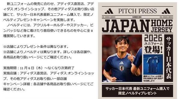 ■サッカー日本代表 2026 ユニフォーム登場!FIFA WORLD CUP 2026™ を応援しよう プレゼントキャンペーン
