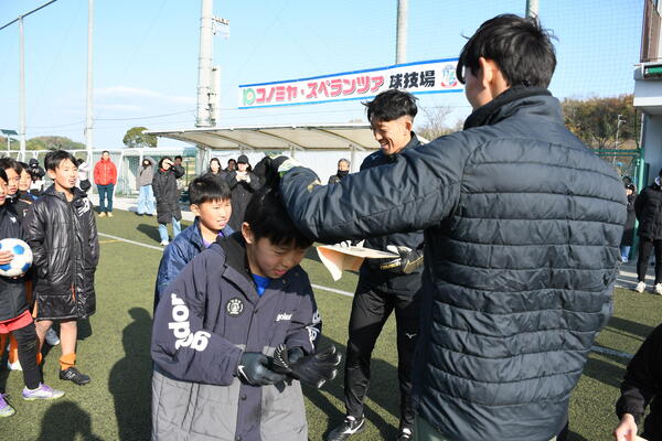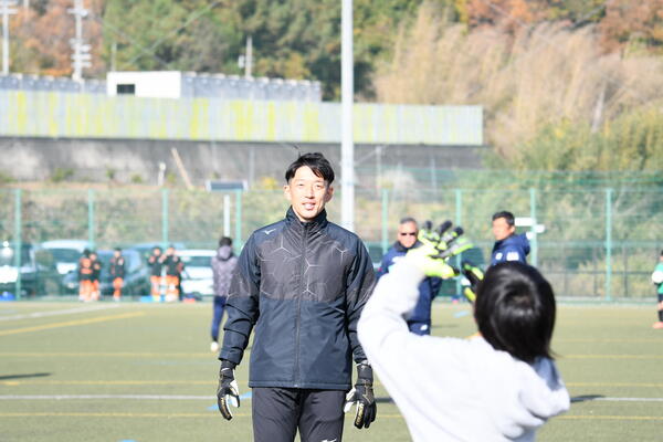 福井選手は、セービングのポイントを実演しながら、「意識してほしいのは、地面と手で壁をつくること。次に上からふたをしてボールをしっかりとキャッチすること。ボールが緩いとその分足を運んでキャッチしてください」と説明。聞き入る子どもたちの姿に、「教えるのって難しいですね。でも、子どもたちの目がキラキラしている。サッカー選手って、子どもたちに夢を与えられる仕事だっていうことも感じますね」と振り返った。