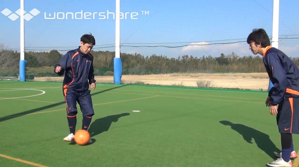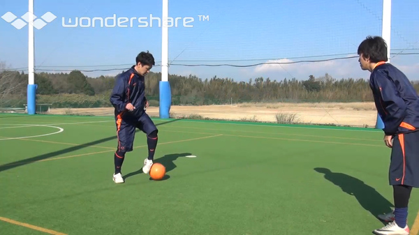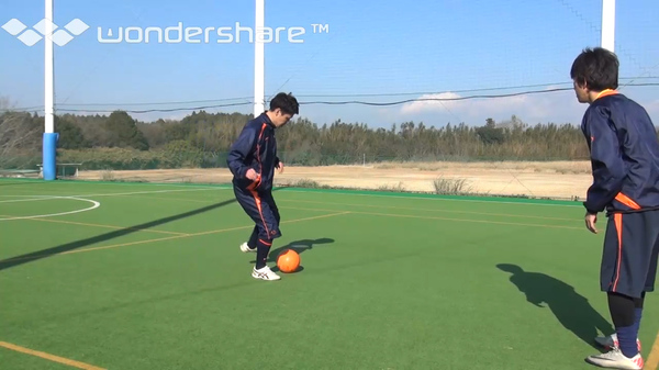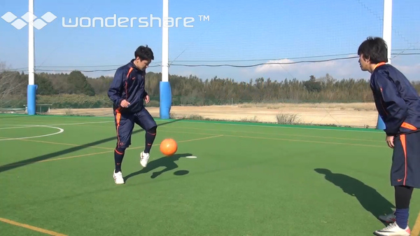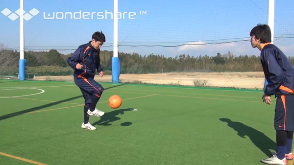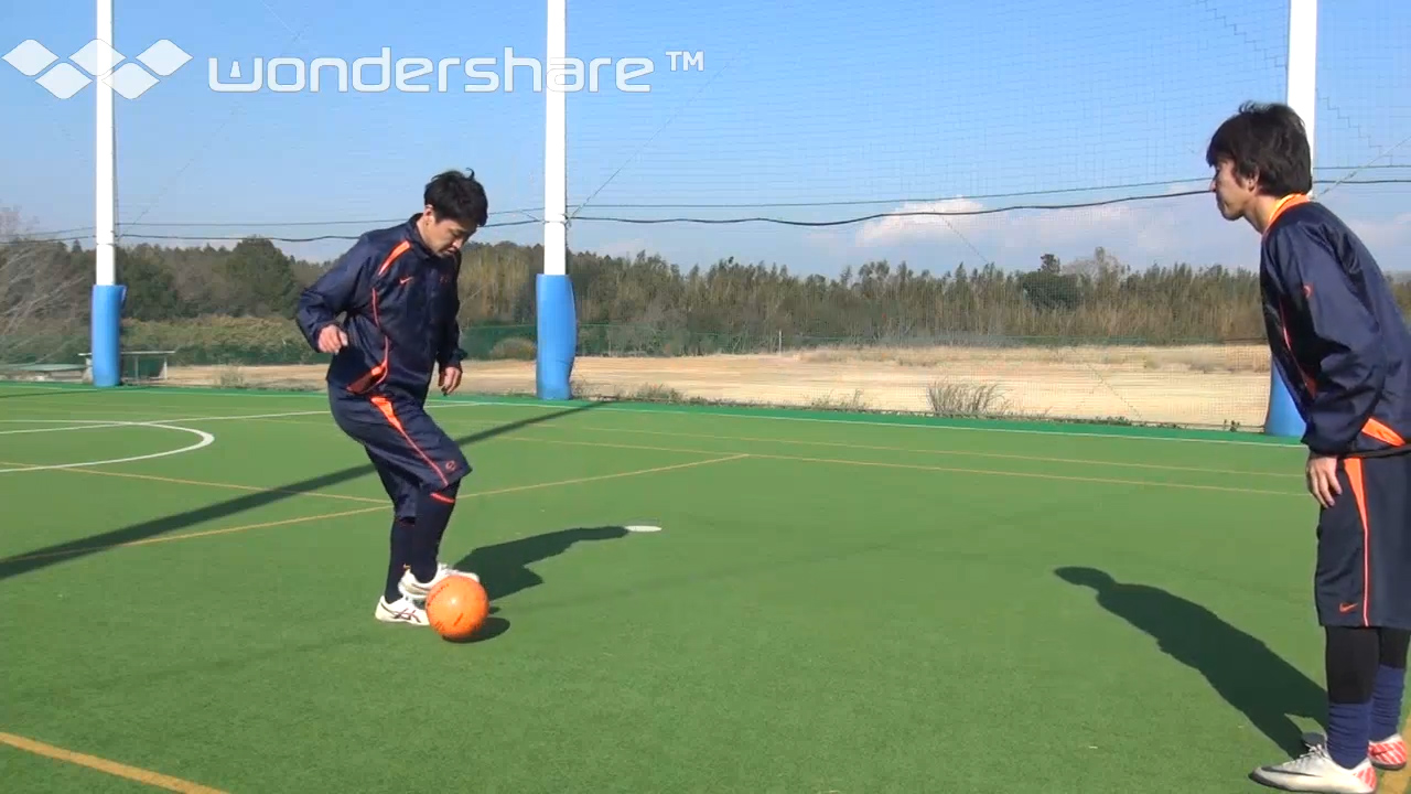 2.ショートバウンドに合わせて右足の外側でボールタッチ