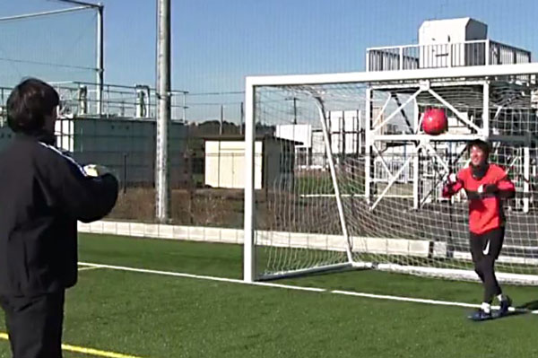 - ゴールキーパーのキャッチング練習「人差し指と親指で三角形をつくる」