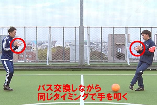 2.パス交換をしながら手を叩く