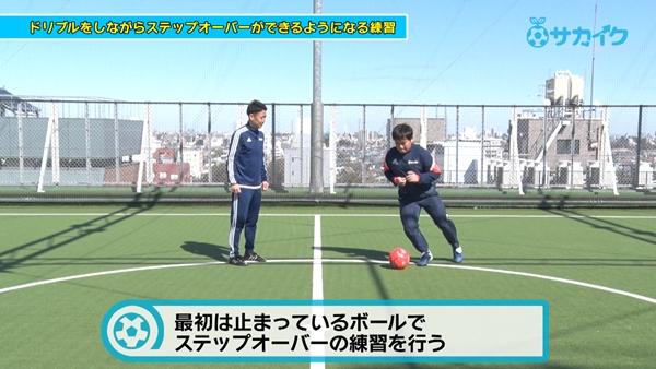 サカイクがお届けする『親子で遊びながらうまくなる!サッカー3分間トレーニング』。今回は初心者に多い、【ドリブルしながらボール外側から内へをまたぐフェイント『ステップオーバー』ができない】という悩みを改善するトレーニングをご紹介します。